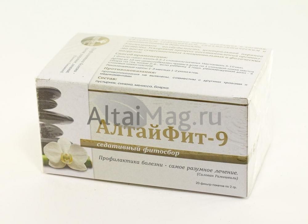 - Чтобы купить Алтайфит-9 седативный чайный напиток 20 пакетиков совершите всего несколько шагов: укажите количество продукта и нажмите на кнопку «Купить».