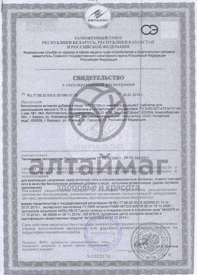 - Чтобы купить АлтэСон (c хмелем и душицей) совершите всего несколько шагов: укажите количество продукта и нажмите на кнопку «Купить».