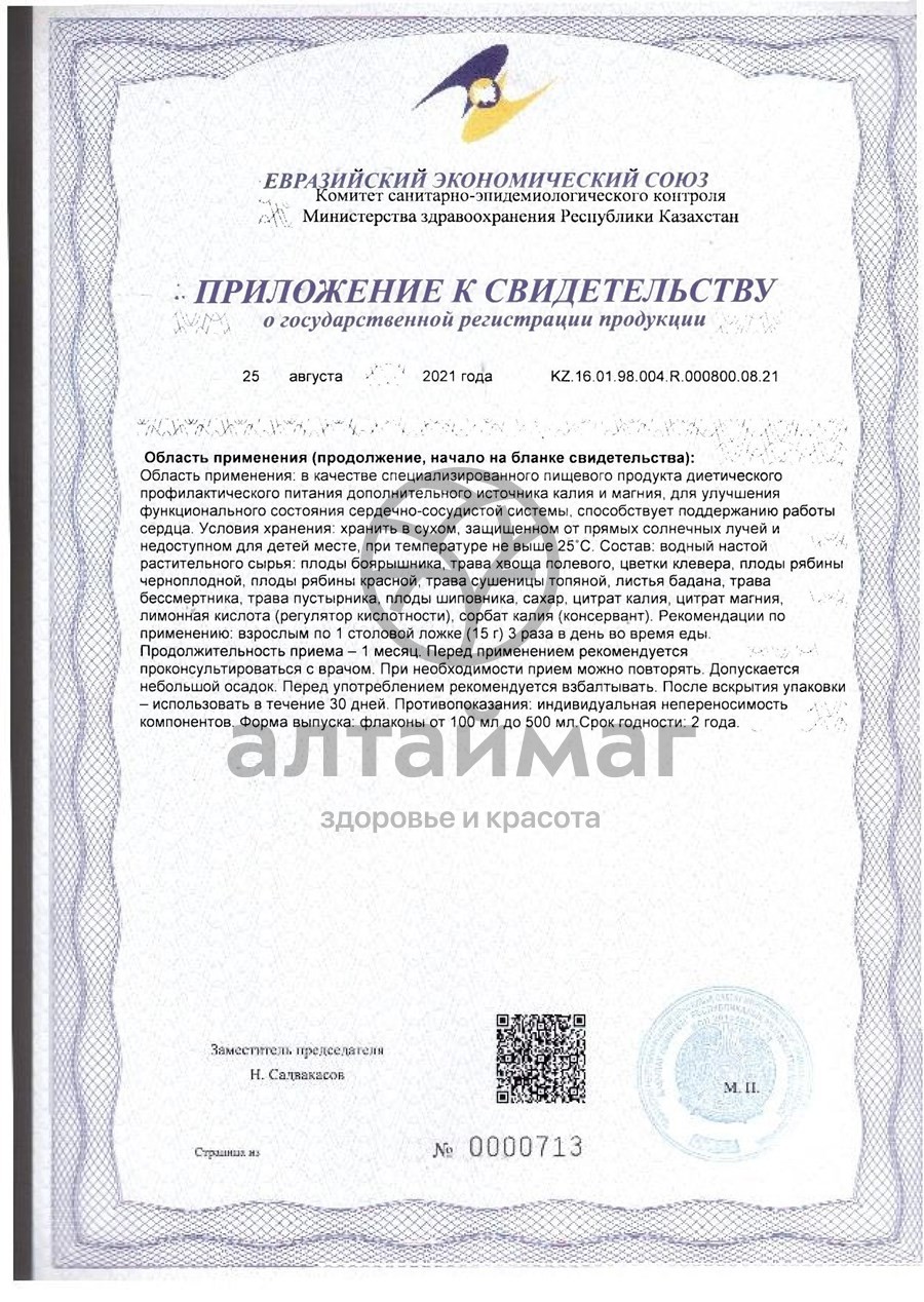 Бальзам дополнительно обогащен калием и магнием для обеспечения эффективной работы сердца.