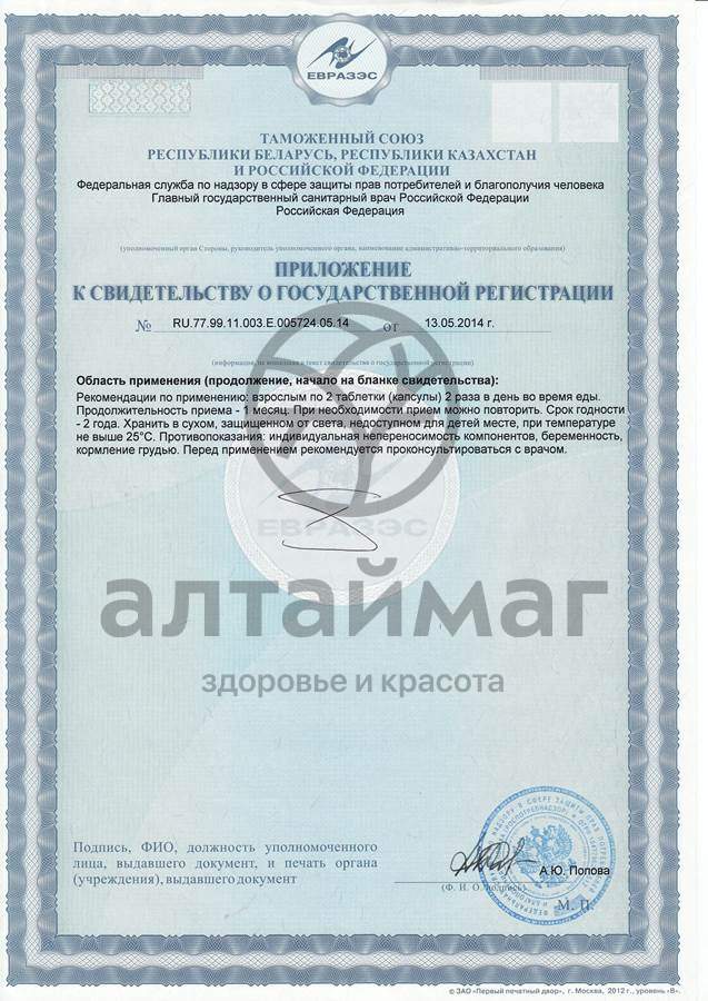 Взрослым по 2 таблетки (капсулы) 2 раза в день во время еды. Продолжительность приема - 1 месяц. При необходимости прием можно повторить.Условия хранения