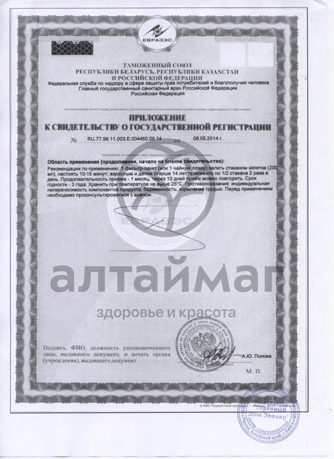 1 фильтр-пакет залить стаканом кипятка (200 мл), настоять 10-15 минут, взрослым и детям старше 14 лет принимать по 1/2 стакана 2 раза в день. Продолжительность приема 1 месяц. Через 10 дней приём можно повторить