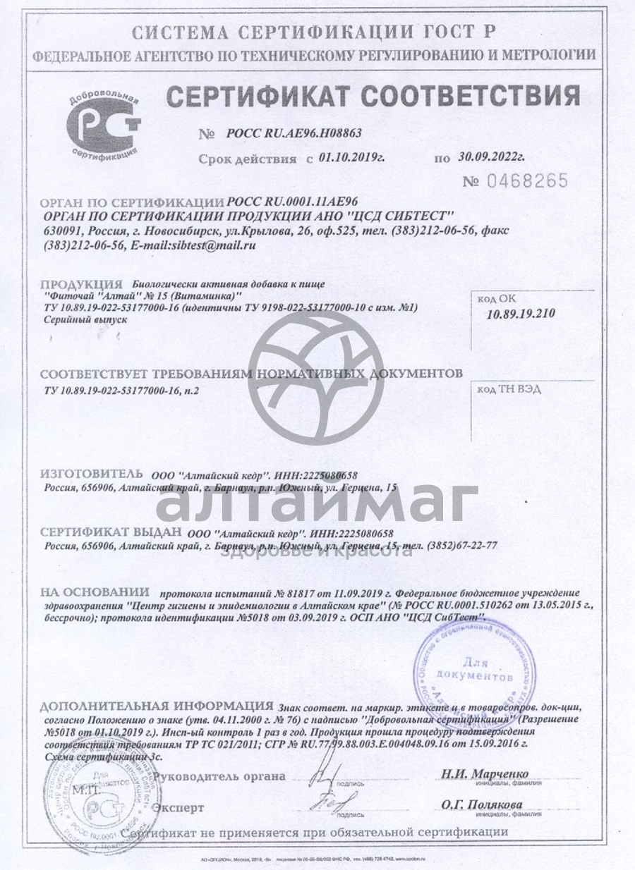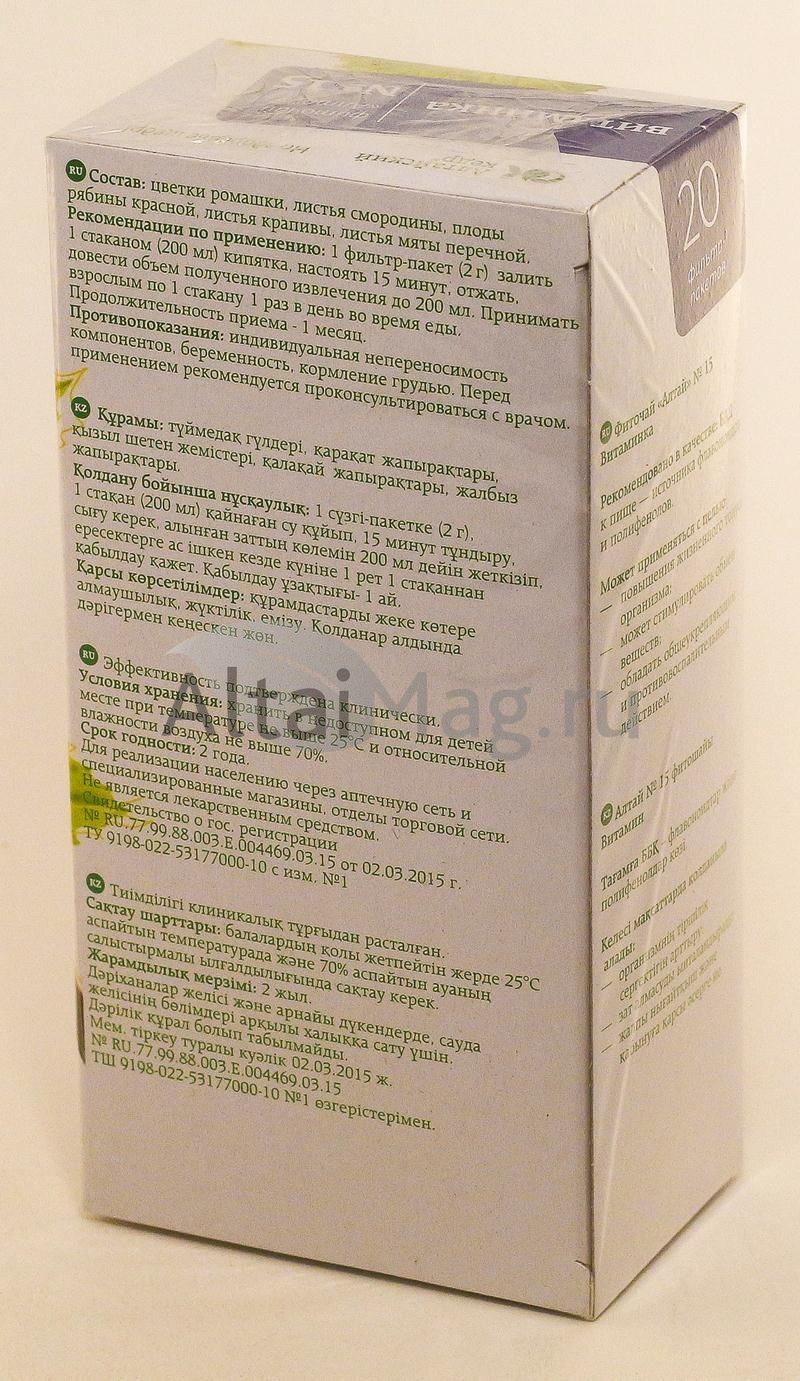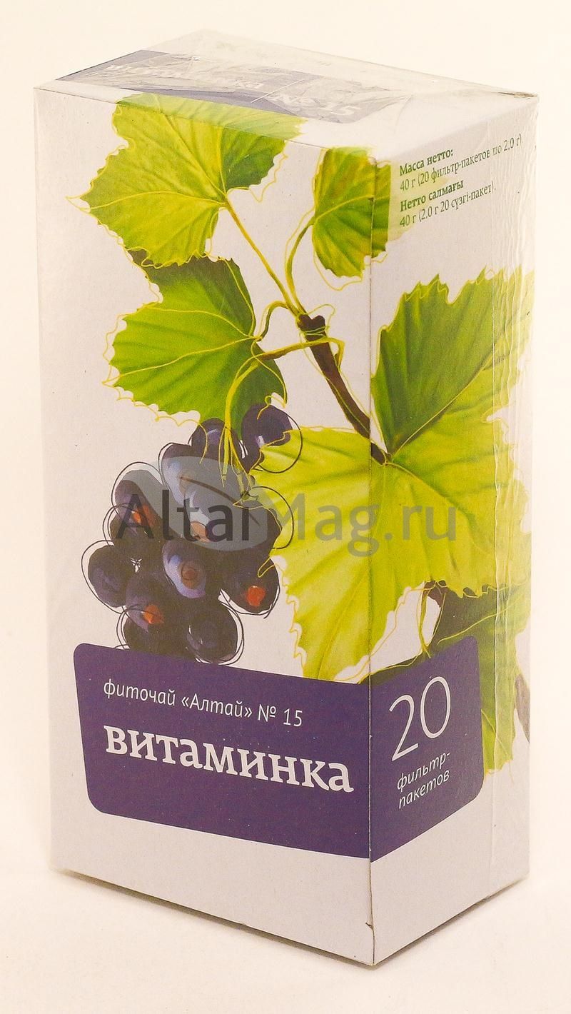 - Чтобы купить Фиточай Алтай №15 витаминка, 20 пакетиков совершите всего несколько шагов: укажите количество продукта и нажмите на кнопку «Купить».