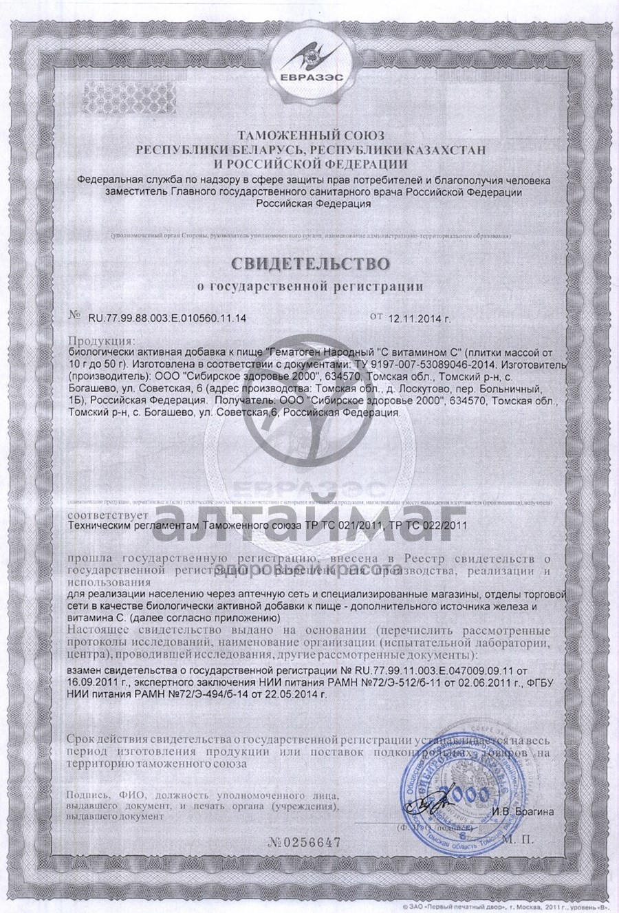Есть вопросы по товару "Гематоген народный с вит. с 40г"?