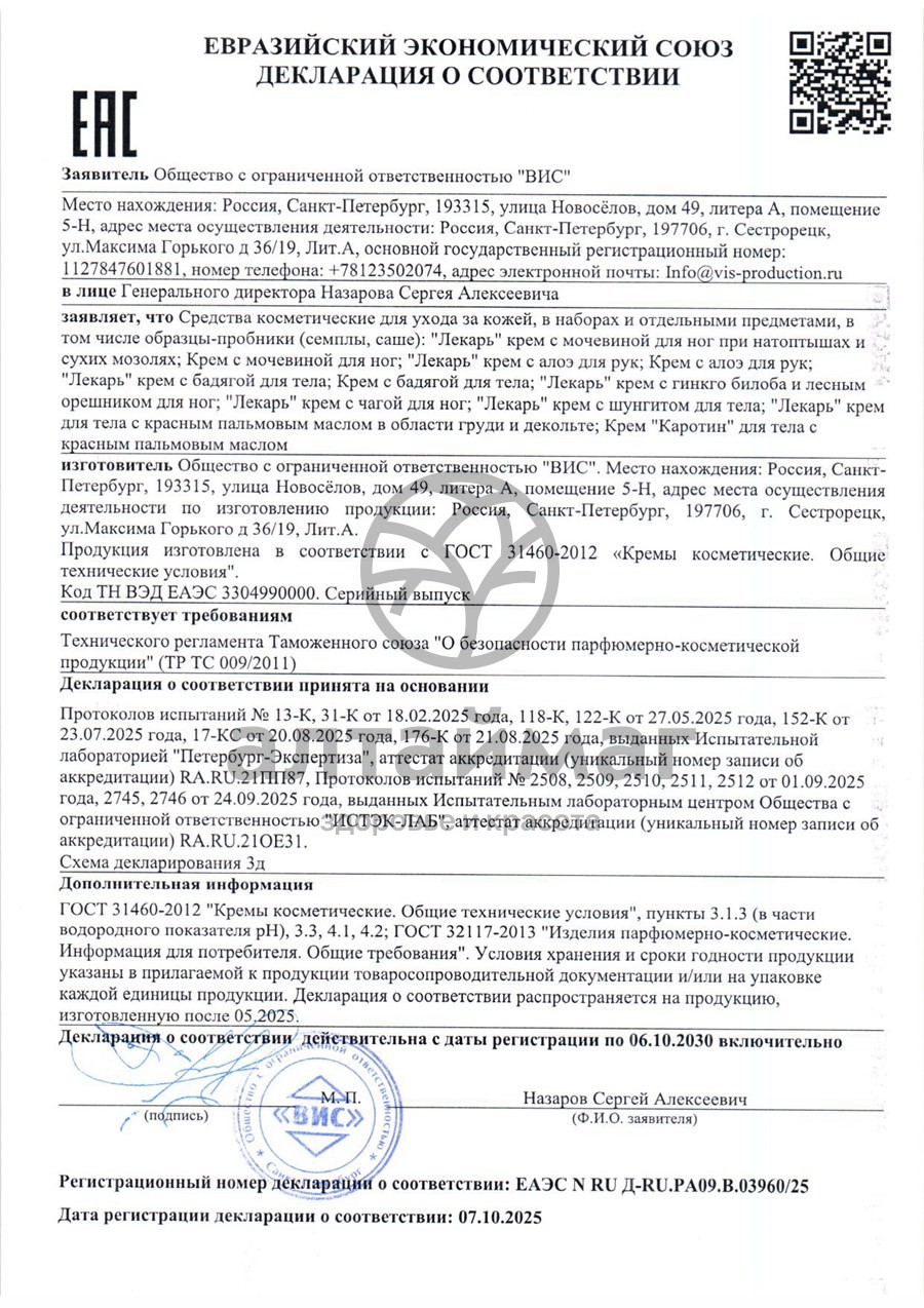 Есть вопросы по товару "Крем для рук с алоэ Лекарь ВИС 50мл"?