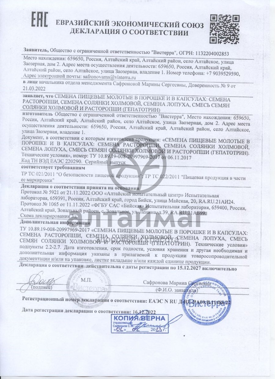 Есть вопросы по товару "Лопух семена Вистерра 180 капсул"?