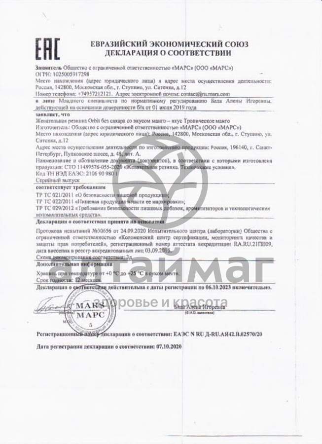 Есть вопросы по товару "Орбит жевательная резинка Манго №10"?