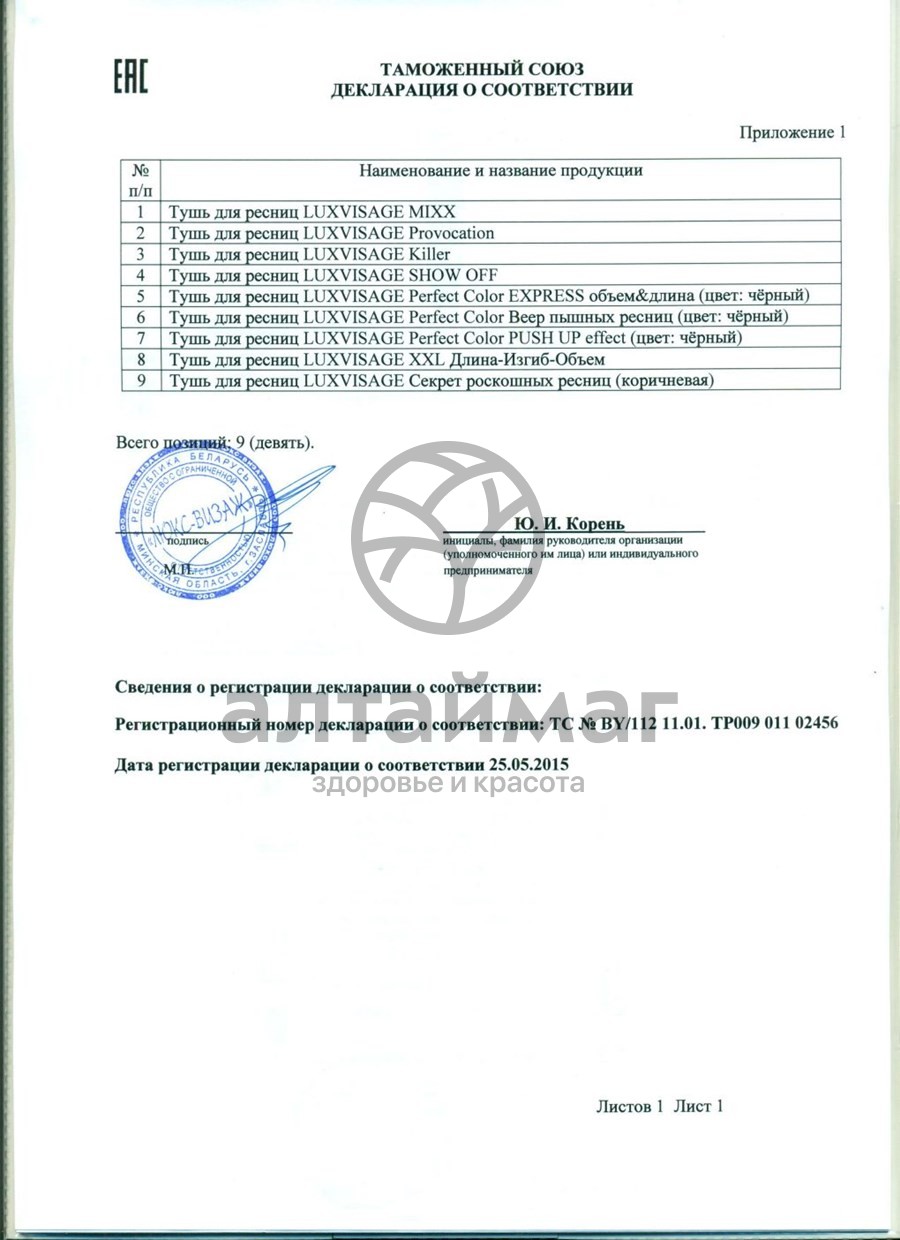 - Чтобы купить Тушь Luxvisage Perfect Color push up effect 9г совершите всего несколько шагов: укажите количество продукта и нажмите на кнопку «Купить».