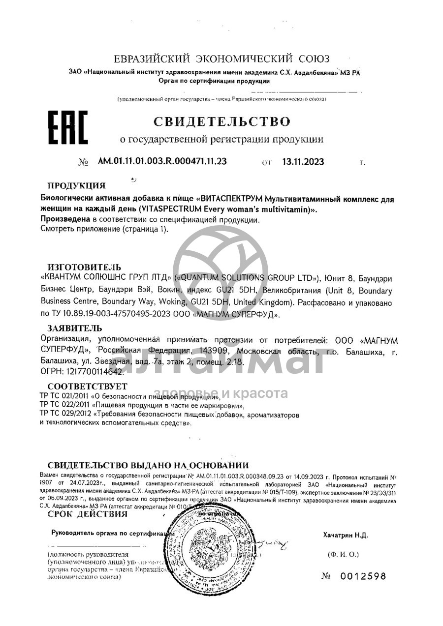- Купите Витамины для женщин VitaSpectrum 60 таблеток в Энгельсе по доступной цене 785 ₽ с доставкой на дом или заберите Ваш заказ в Энгельсе из ближайшего пункта выдачи, сделав заказ на AltaiMag.ru.